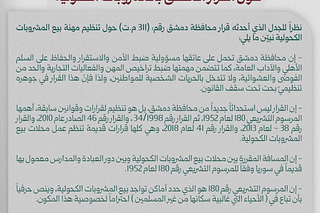 A 'Clarification' from Damascus Governorate on Restricting Sale of Alcoholic Drinks