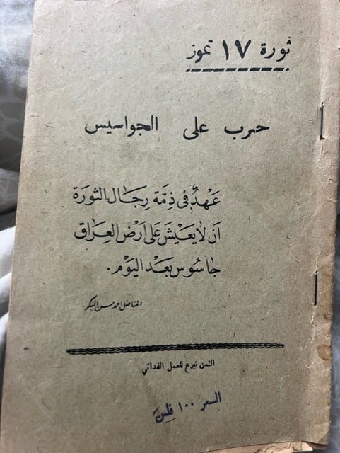 A pledge taken up by the men of the revolution, that no spy should live on Iraq’s land after today
