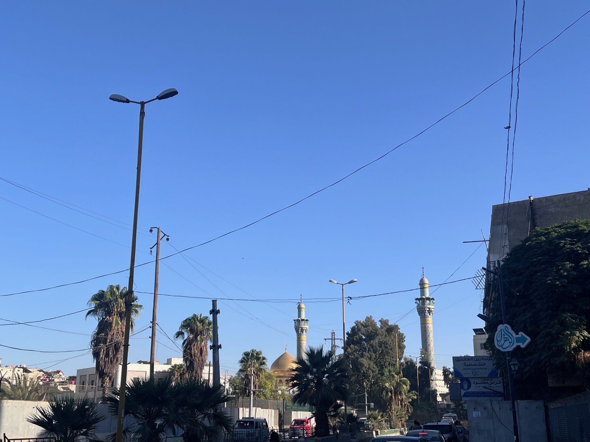 The Sayyida Zaynab shrine photographed from a distance in October 2025. Notice that the ‘Oh Zaynab’ banner is missing.